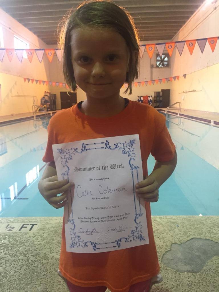 Callie Coleman earns Swimmer of the Week August 5th by Robin | Aug 16, 2016 | Featured Slider Image, Swimmer of the Week