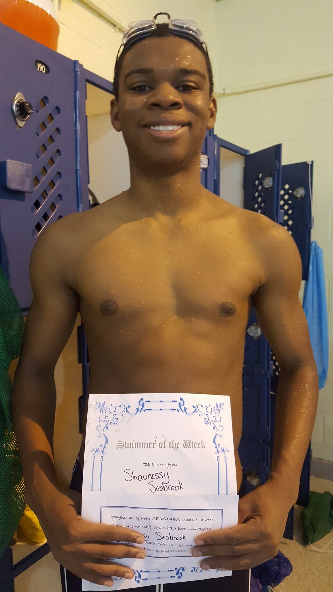 Congrats to Shaunessy Seabrook for earning swimmer of the week July 1st by Robin | Aug 16, 2016 | Swimmer of the Week